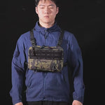 Crafted with laser precision, this tactical chest rig combines military functionality and urban flair. Far more than a simple military chest bag, it's been reenvisioned for the streets. The sophisticated camouflage pattern adds a contemporary edge to your techwear, warcore, or darkwear ensemble. The result? An avant-garde masterpiece that not only amplifies your outfit but also whispers tales of power, resilience, and undying spirit.