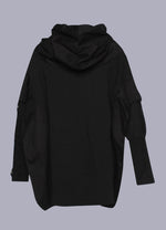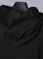 This hoodie's aesthetics send a thrilling wave through the viewer, a full black construct, effortlessly merging two layers into one seamless design. As you pull over the expansive high collar, which conveniently covers up to your nose, you're not just wearing a hoodie; you're shrouding yourself in a cloak of mystery and strength. The encompassing hood serves as a shield, promising protection and anonymity, empowering you to cruise your city streets with an air of confidence and intrigue.