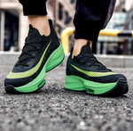 Embedded within each shoe is a thick, technology-infused sole that amplifies your rebound capacity, transforming every pavement pound into a step towards conquering the urban jungle. Yet, beneath this veil of performance lies a fashion masterpiece that seamlessly blends into the rhythm of the metropolis. From the classroom to the conference room, from the café to the club – these black shoes become a fashion statement wherever you tread.