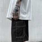 Our men's streetwear shorts feature visible white seams, a touch of unexpected detail that adds class and sophistication to your ensemble. The sleek and streamlined silhouette enhances rather than overshadows your style.